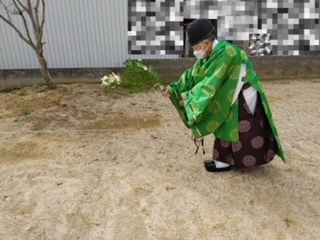 現地に着くと 神主さん、建築会社の方たちが 地鎮祭の準備をされていました。